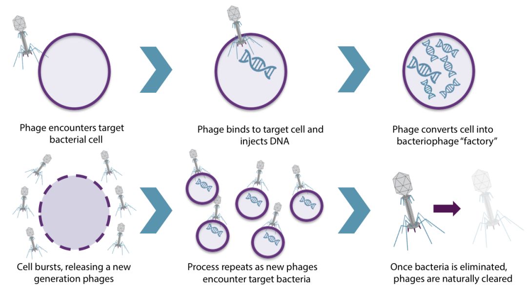 ▲噬菌体杀死细菌的过程(图片来源:Ampliphi Biosciences官网)