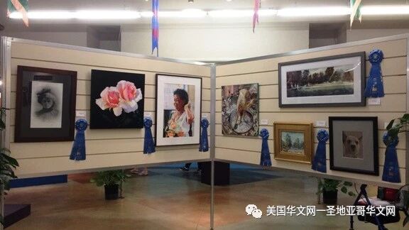 亚裔画家作品不乏其数。上图为华裔田慧娴老师的【La Jolla Sealion】被当选为优秀画作展示其中。