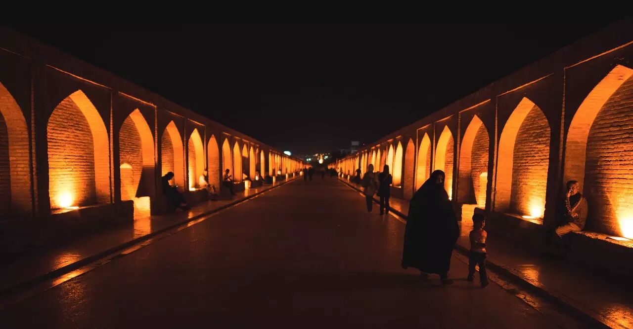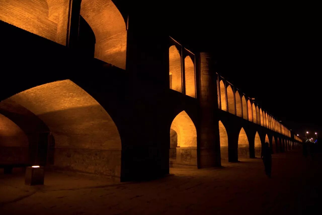 据马蜂窝介绍:“是伊朗伊斯法罕 11 座桥梁之一,被高度评价为萨法维桥梁设计最著名的代表之一。 建于 1602 年,全长 298 米,双层结构,共有 33 个拱。。。拱桥同时也起到大坝的作用,可拦截河水。”这是我在伊斯法罕最喜欢的地方,因为它虽然是一个非常古老的建筑,但是它仍然是伊斯法罕人生活中的一部分,晚上淡黄的灯光把每一个桥拱都点亮了,家长会带孩子来散步、朋友坐在桥上吃饭、情侣会躲在黑暗处约会,充满了生活的气息。