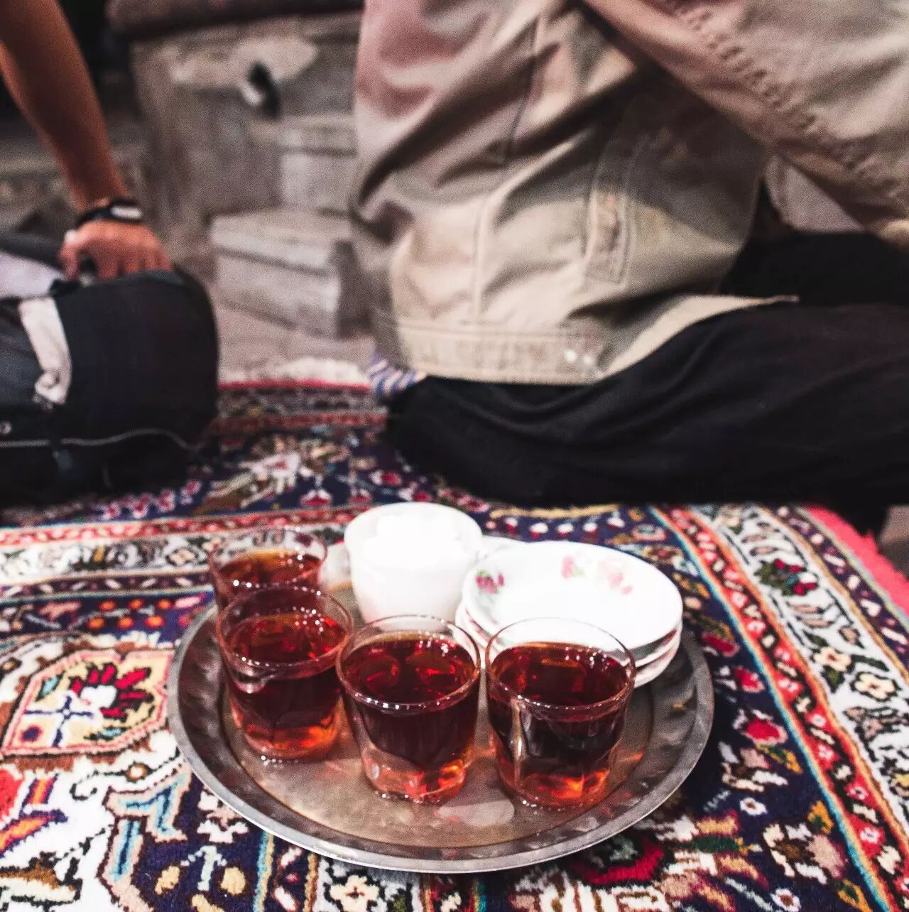 这里卖地毯的爷爷们都非常友好,我们以为他们是想给我们推销地毯所以那么热情,所以告诉他们我们没钱,但后来发现他们是真心地友好,其中一位带着我们在巴扎内到处走,给我们介绍它的历史,还邀请我们一起喝茶。