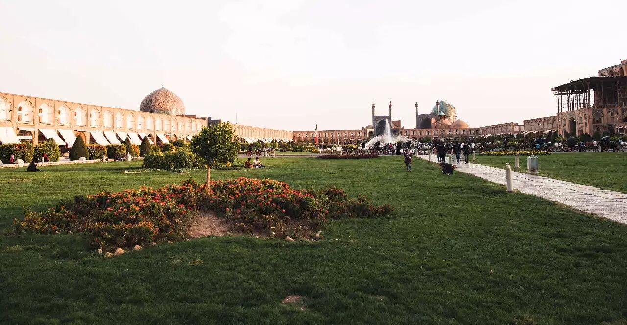 据马蜂窝介绍:“伊玛目广场面积仅次于北京天安门广场,位居世界第二。原名为国王广场,伊斯兰革命后改名。1979 年被列入世界遗产。” 说实话,这个广场虽然比天安门小,但是比天安门漂亮多了,有蓝天、白云、还有绿化,而且四周的建筑上的细节特别精细、有味道。著名的蓝色清真寺就在这里。