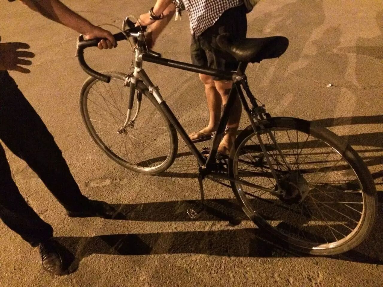 晚上在街上教 Sher(图右)骑摩托车时又遇到了 Sasha