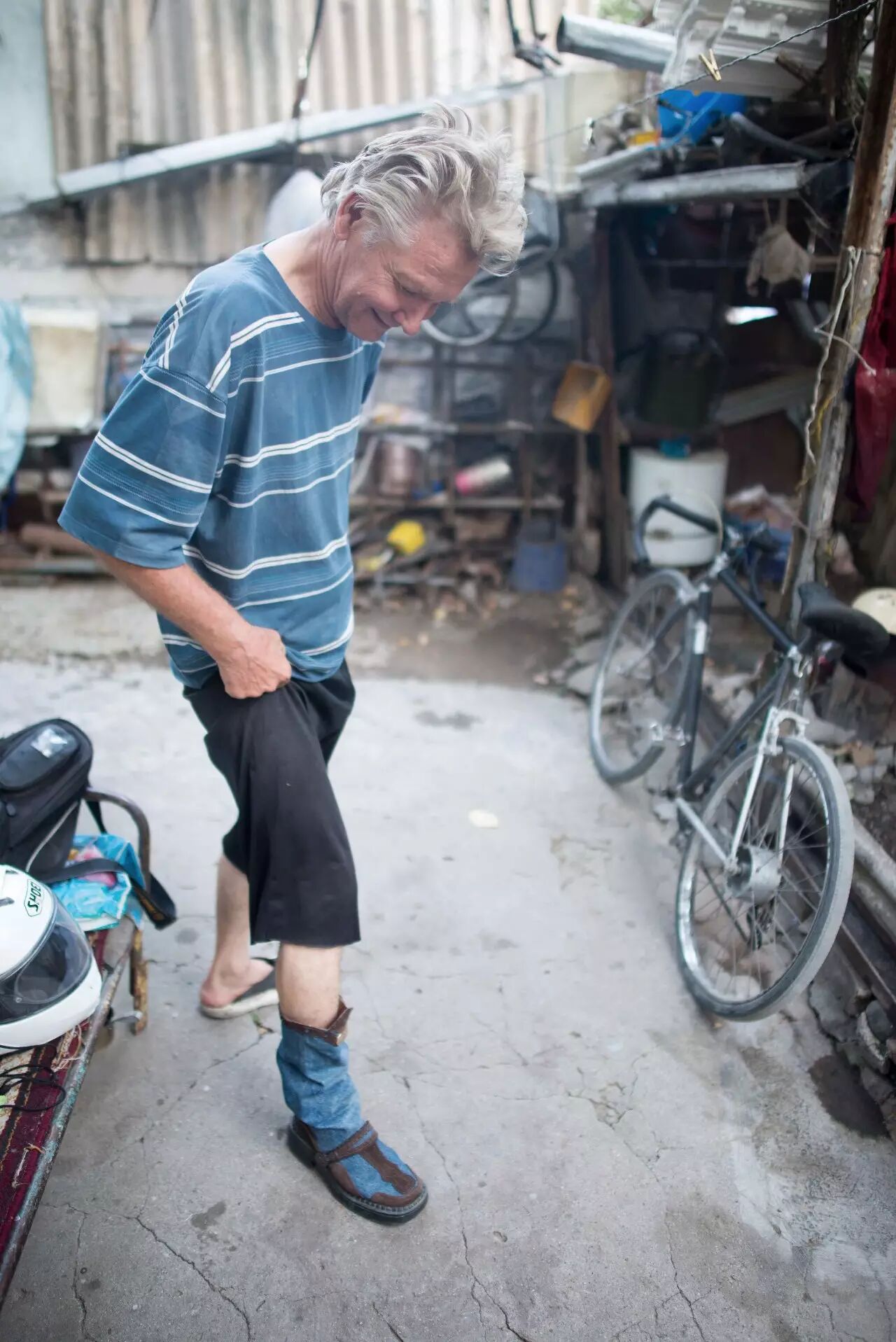 最让我欣赏的是他的心态。由于大环境的影响,他在 62 年当中生活一点也不容易,但他并不自暴自弃,而是想办法适应。他家里的小花园堆满了摩托车零部件、铁片、塑料件。对外人来说,这些都是废物,但是对 Sasha 来说,每个物件都是新的机会。