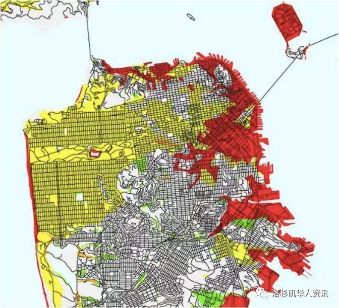 除了高危区域以外,因为土壤的关系,旧金山湾区这些地方的震感也会格外强烈。美国地质调查局The U.S. Geological Survey把的土壤分成从A-E5个级别: