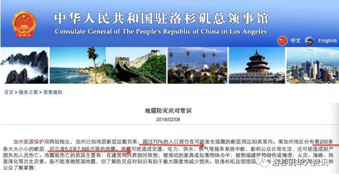 中国驻洛杉矶总领事馆就地震防灾发布重要提醒,全文如下: