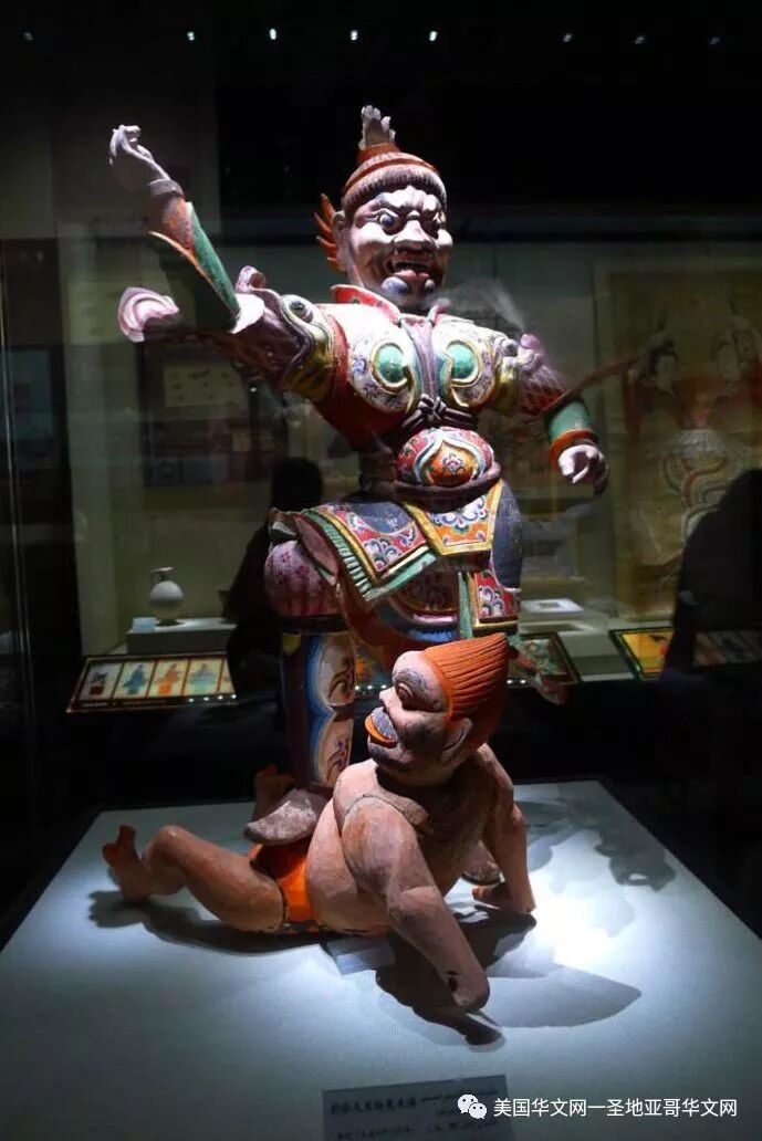像所有的博物馆一样,新疆博物馆也有一些镇馆之宝。彩绘天王踏鬼木俑,1973年出土于吐鲁番阿斯塔那古墓群高昌左卫张雄大将军墓,目前为止国内仅此一件,且出土时保存完整。此类天王俑是作为墓葬”守护神”置于墓室门外,以保卫墓主人的安宁。