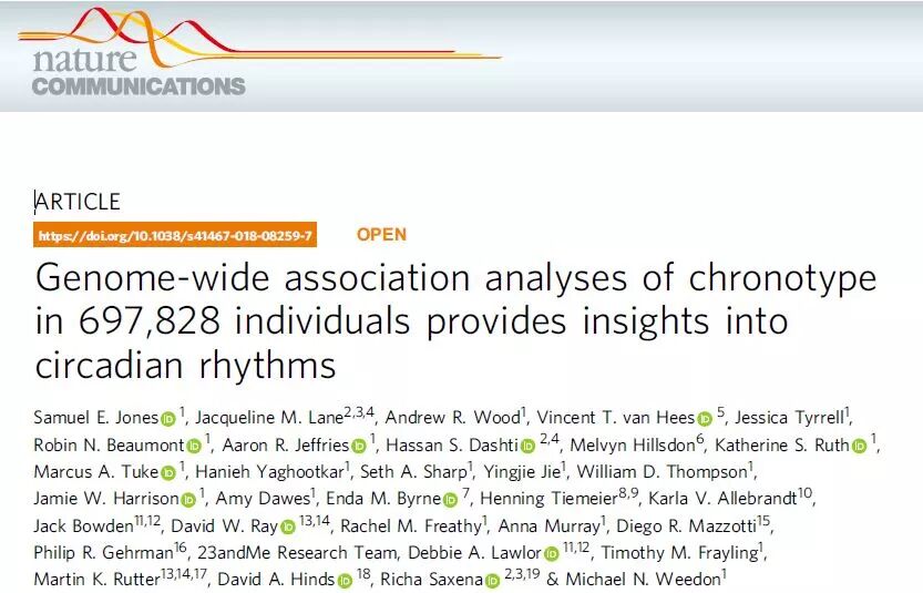 in 697,828 individuals provides insights into circadian rhythms. Nature Communications, DOI: 10.1038/s41467-018-08259-7