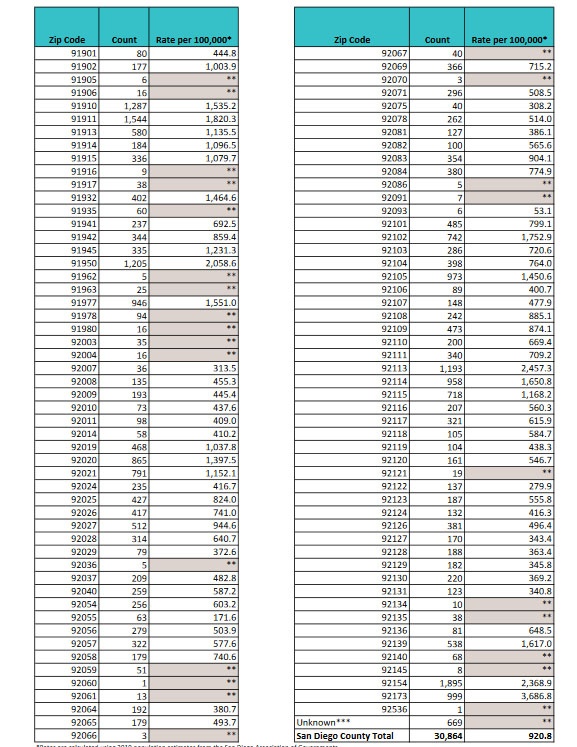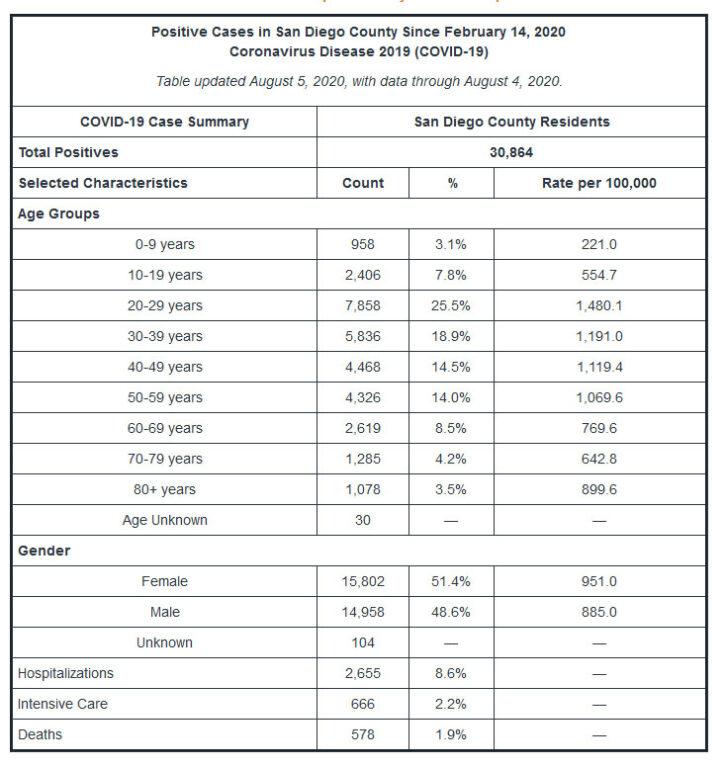 自3月份报告第一例当地病例以来,圣地亚哥县已进行了631968次检查,累计30864例病例和578例死亡。